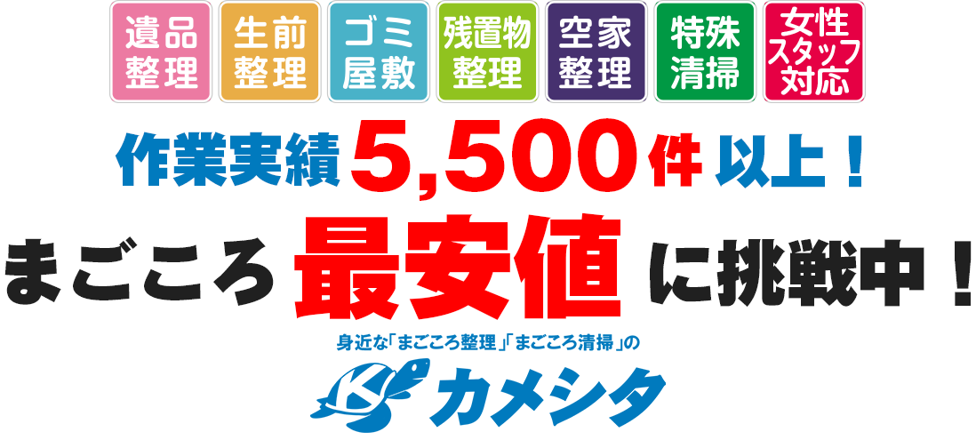 はじめまして、生前整理・遺品整理の専門業者の身近な「まごころ整理」「まごころ清掃」のカメシタと申します。